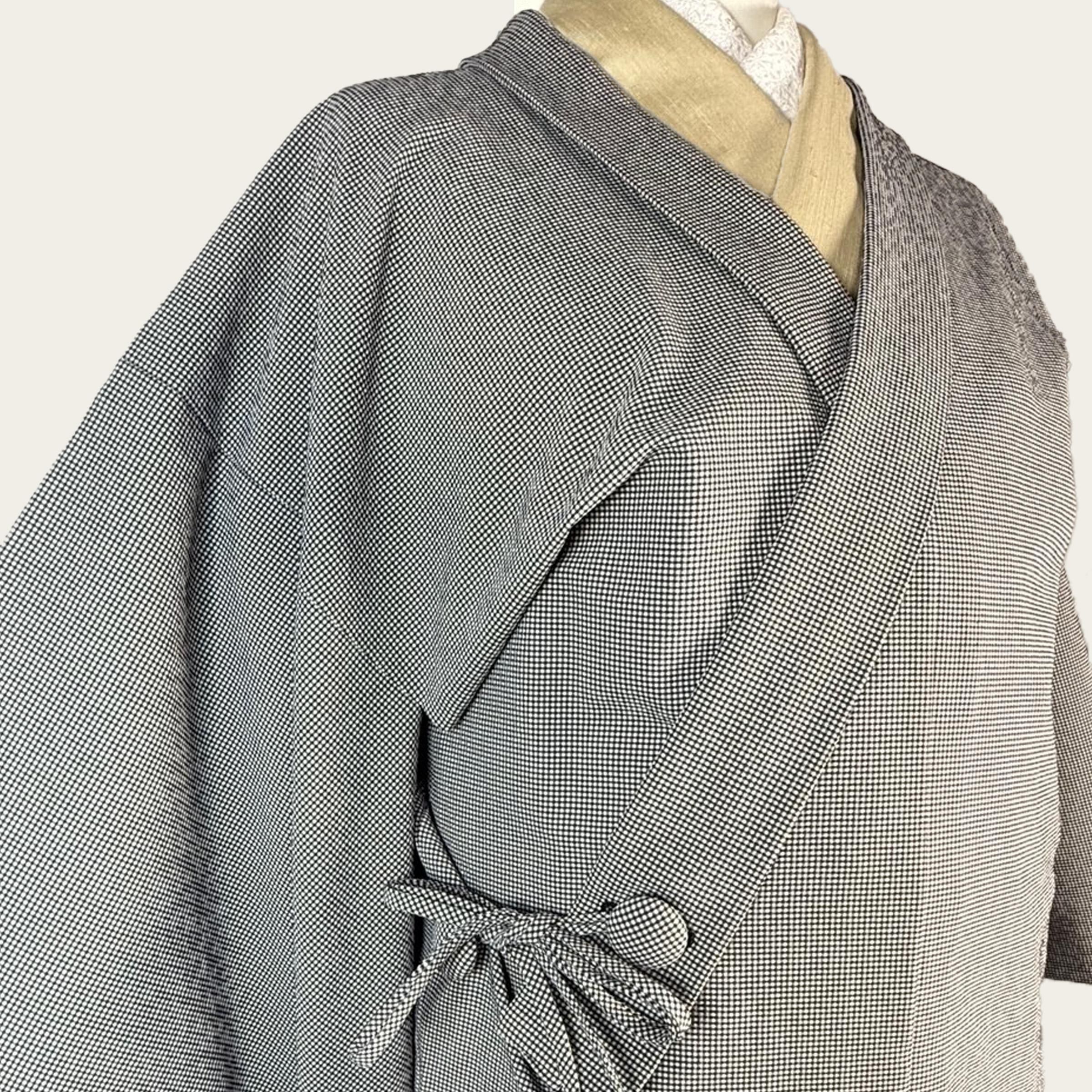 細かい格子織りで凹凸のある生地感が心地よい一部式の雨コートです。裾すぼまりのキレイなシルエットでスッキリした着姿を実現します。生地には撥水加工が施されており、大切なお着物をしっかりガード。衿を立てると、着物の衿元をすっぽり覆うように計算されています。また、衿を立てた時にはボタンを留めてもお召しいただけます。ポリエステルなのでお手入れも楽ちん。雨コートとしてのみならず、塵除けや肌寒い日の防寒コートとして様々なシーンでお召しいただけます。